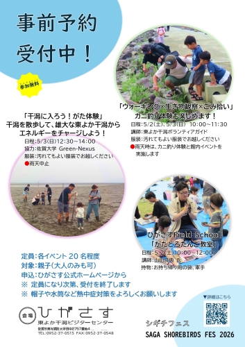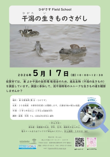 東よか干潟は佐賀県南部の有明海奥部北岸に位置し、東与賀干拓(大授地区)の南に広がる泥干潟です。