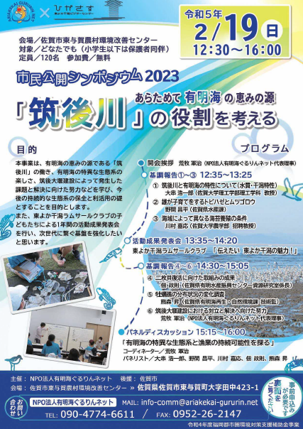 市民公開シンポジウム2023 あらためて有明海の恵みの源「筑後川」の役割を考える 参加者募集!